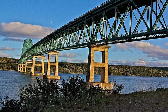 We stop at an RV camp at the foot of Kelly’s Mountain on Boulardere Island looking out on the Bras d’Or Lake. This lake is an inland sea with channels that connect the Cabot Straight to the Atlantic Ocean. Up to 31 miles wide and 62 miles long, we stayed at the foot of the dramatic Seal Island Bridge, connecting our chunk of land to New Harris, Cape Breton to the north. White an red lighthouses stand sentry at the waters edge all over the area.