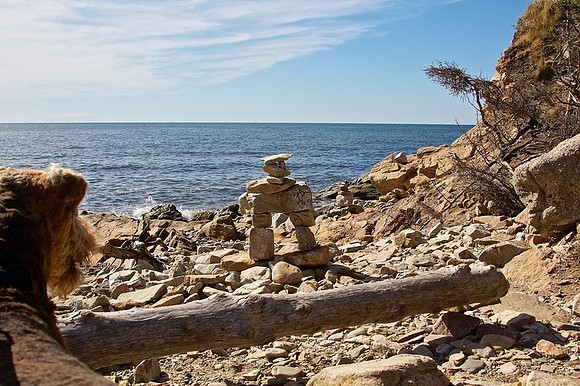 On a rocky beach heading toward Chéticamp, we found a cairn that looked much like the Inuksuk stones we saw on Hudson Bay north of Winnipeg.