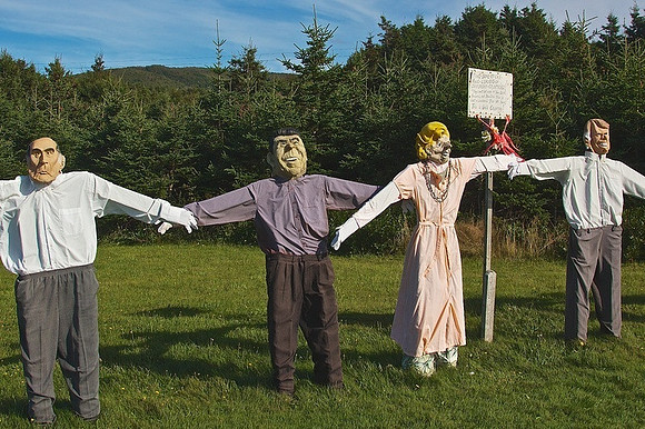 Our final stop on the Cabot Trail was Joe’s Scarecrow Village at Cap le Moine. What started as an effort to keep crows out of a garden has become an elaborate Cabot Trail landmark. Margaret Thatcher, Ronald Regan, Nixon, and all manner of over 50 other scarecrows now watch over a very odd open field.